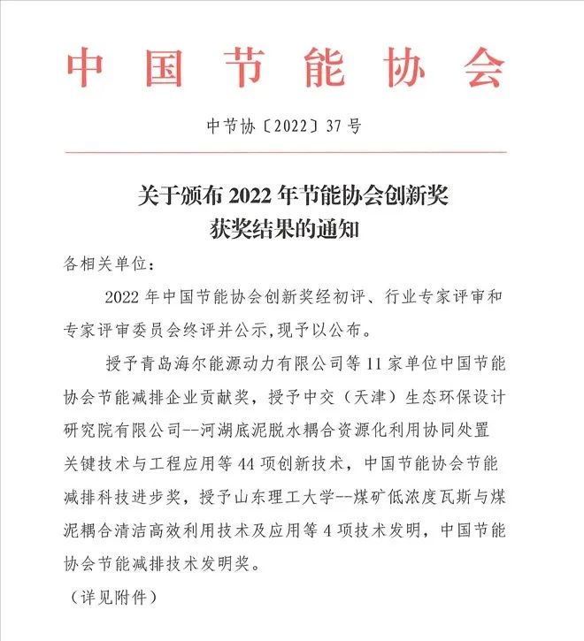 水發興業能源斬獲中國節能協會節能減排科技進步獎一等獎