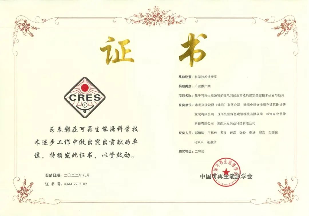 水發(fā)興業(yè)能源榮獲2022年度中國可再生能源學(xué)會科學(xué)技術(shù)獎二等獎