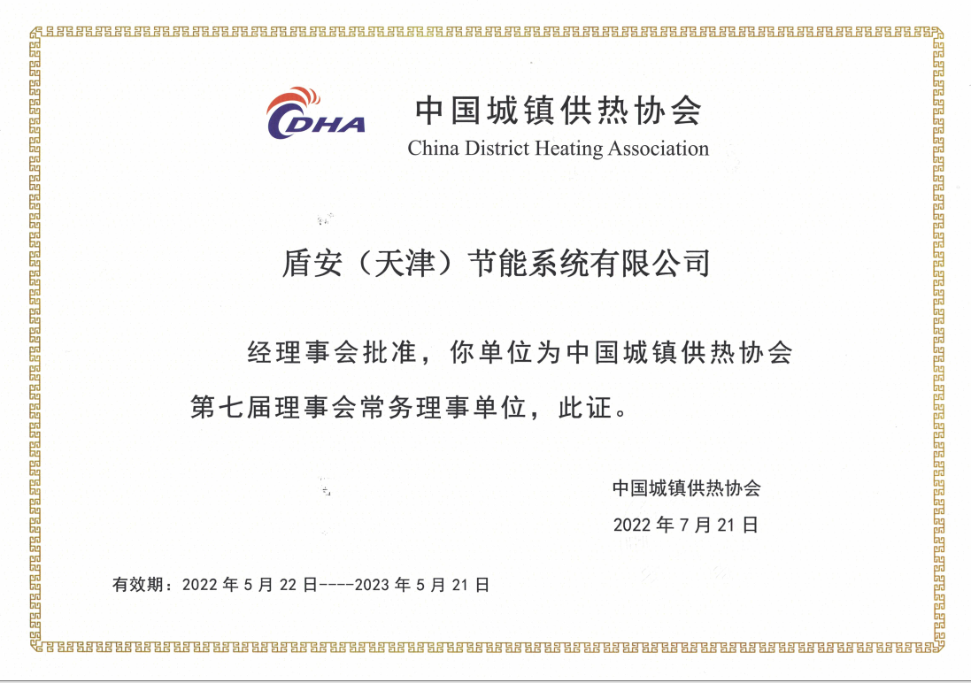 水發盾安(天津)節能系統有限公司當選中國城鎮供熱協會第七屆理事會常務理事單位