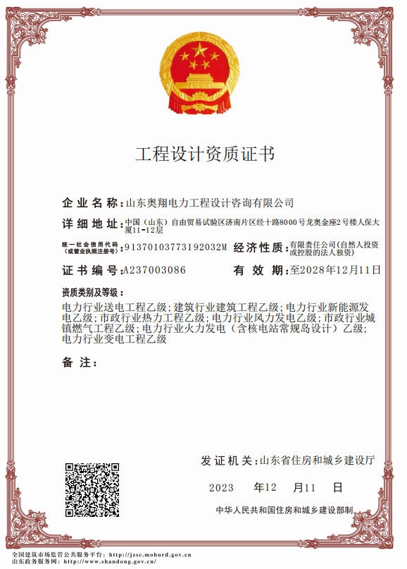 年終歲首話發(fā)展|奧翔電力工程設(shè)計(jì)咨詢公司順利通過設(shè)計(jì)資質(zhì)5年有效期延續(xù)