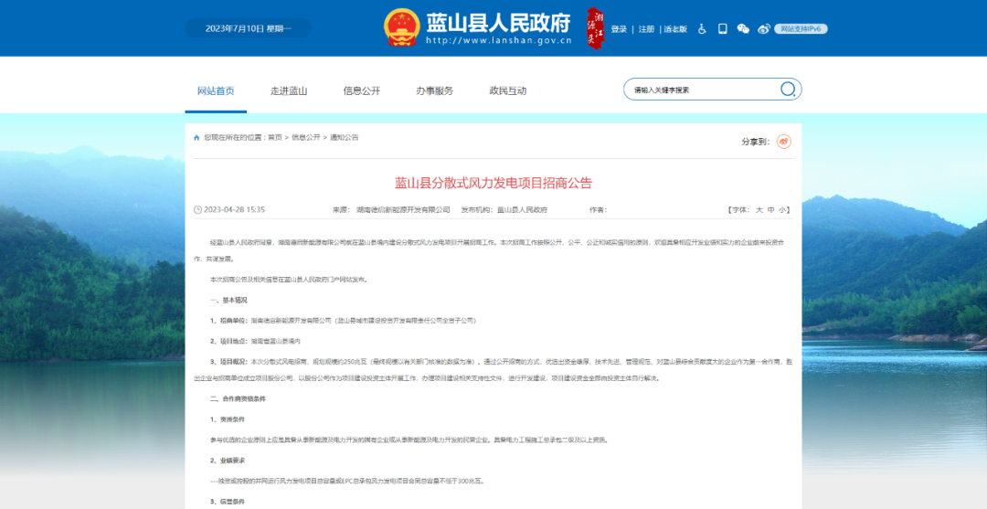 喜報!水發能源集團中選湖南省藍山縣250MW分散式風電項目合作商!